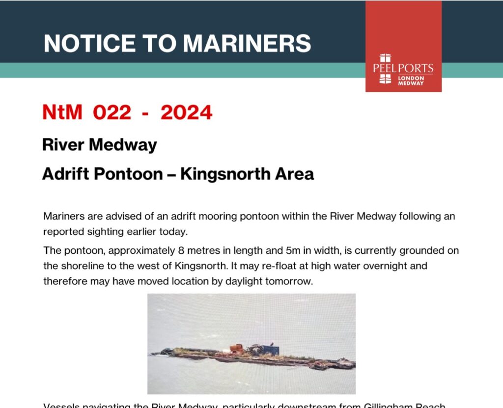 Notice to Mariners, River Medway Warning – Updated