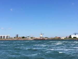 With tide and a fair wind, we reckoned around 6hrs. At last an increase in the wind, still from the NE, saw us at Zeebrugge, “nothing in or out,” we cracked on and turned on a more Southerly course towards Oostende. Tide helped us make good progress.